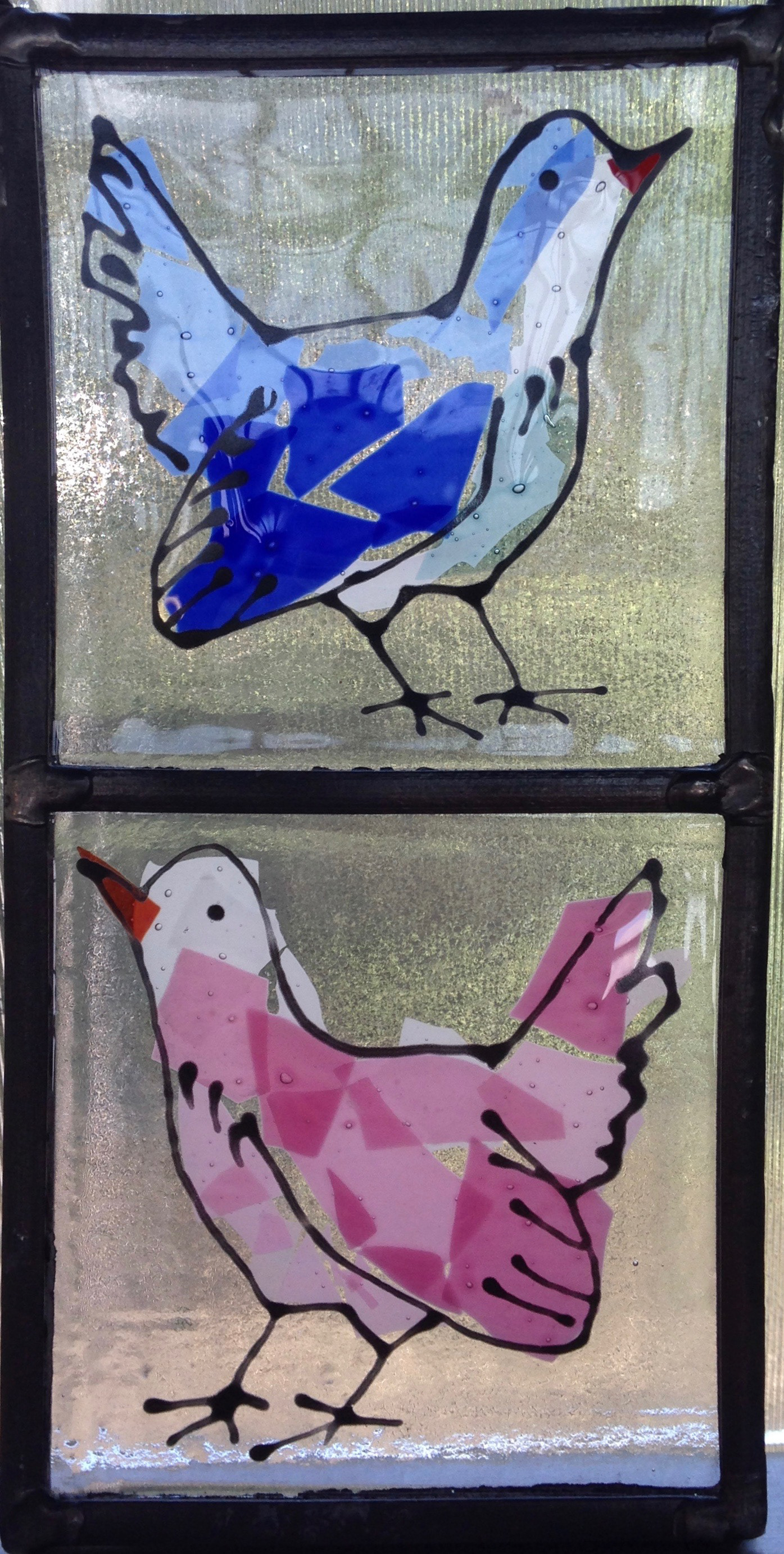 Fused glass/Stained glass lilies - shown with and without traditional leaded border.