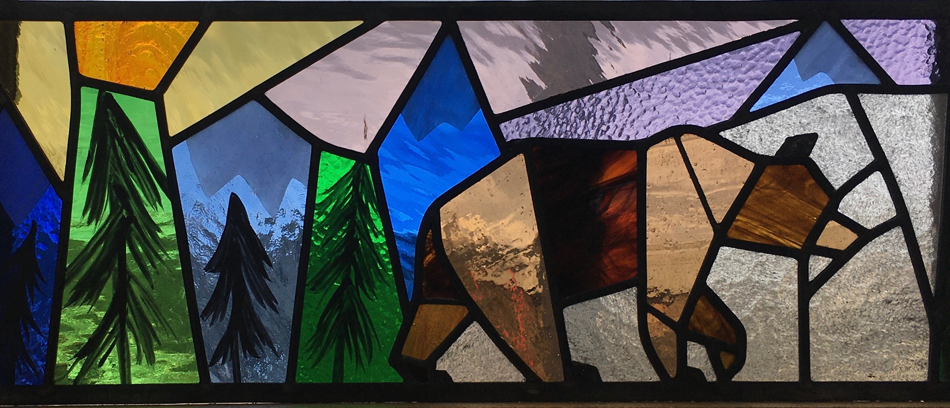 Stained glass skylight panel commission using traditional leaded light techniques and kiln fired paint.