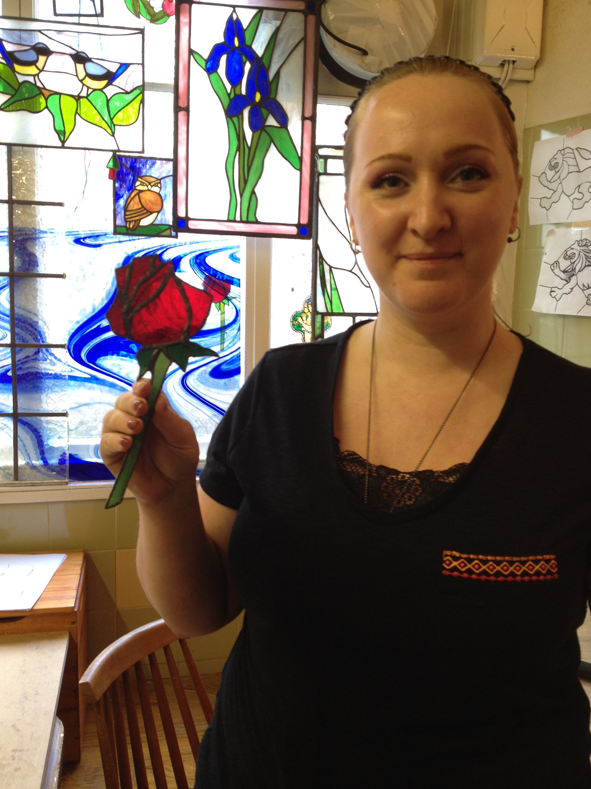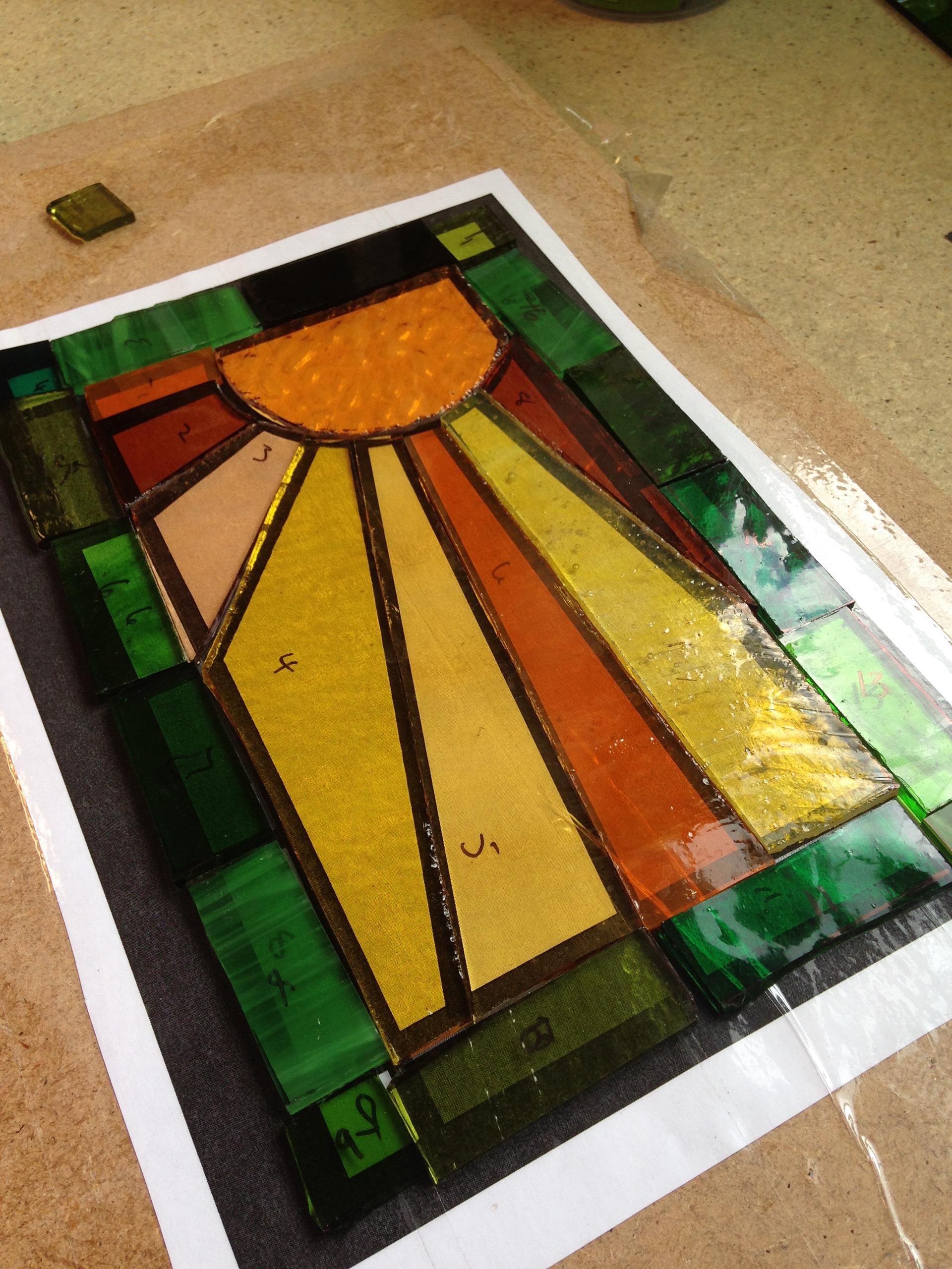 Skills: Glass cutting, glass selection, help with design, a combination of tiffany copper foiling technique, soldering and basic lead work.